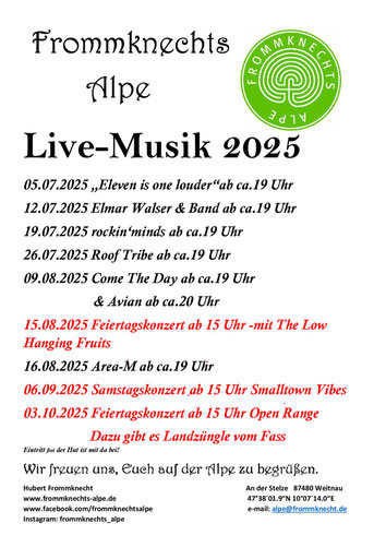 Dieses Jahr gibt´s auf der Alpe ein buntes Programm, wir hoffen das für jeden was dabei ist. Wir freuen uns euch weiterhin eine gute Bioqualität von Wurst (Siegel), Käse (Wiggensbach, Alpe