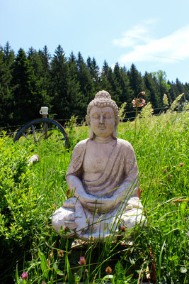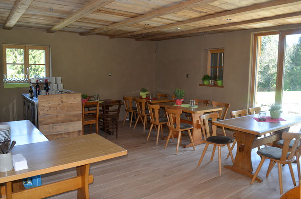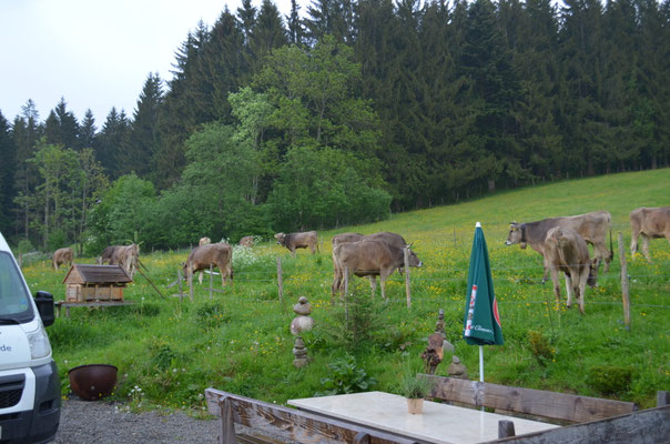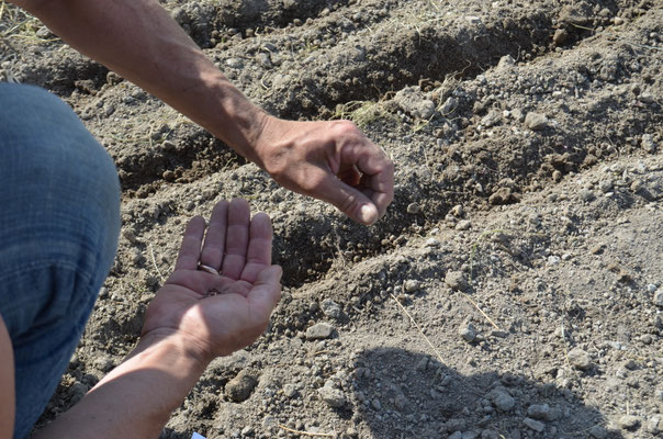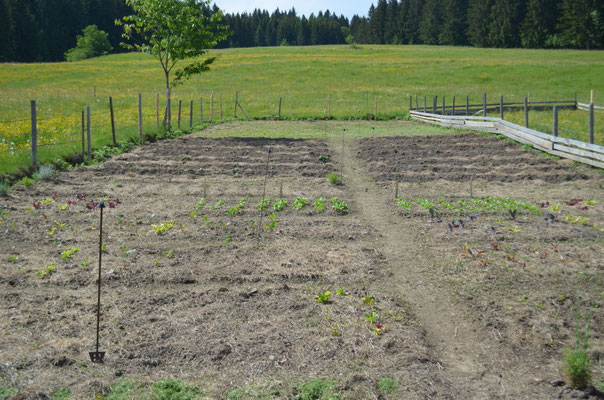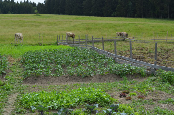 Rund um die Alpe sind Kräuter angebaut, dazu kommt ein Beet mit Gemüse. Das Beet wurde im Vorjahr von unseren Schweinen umgegraben.