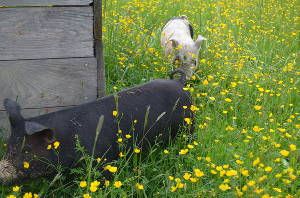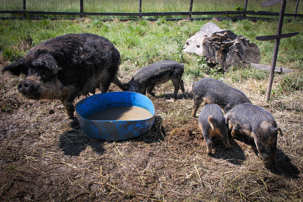 Auf der Alpe erwarten Euch Schumpen, Schweine und Bienen. Geplant sind Schafe, Weidegänse und mehr.